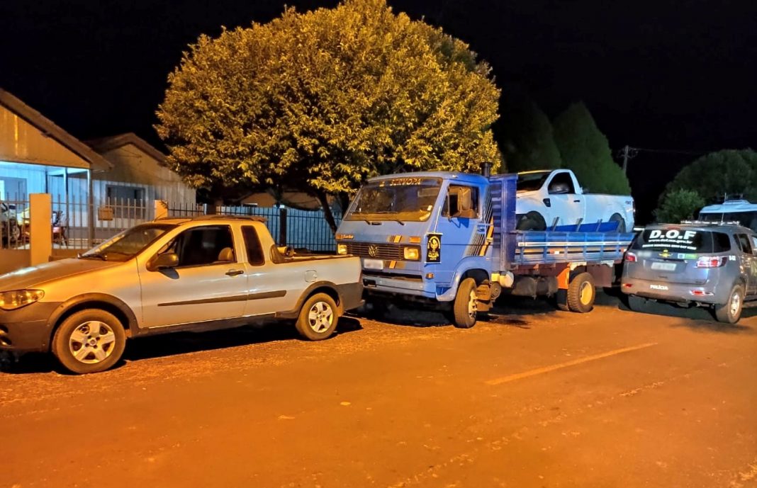 Durante a checagem dos agregados dos veículos, os policiais descobriram que o caminhão fora furtado no dia 29/03/2020 na cidade de Colorado (PR), sendo as placas verdadeiras de Lobato (PR). Já a Ford Ranger fora furtada em Pouso Alegre (MG), no dia 9/05/2020, sendo as placas verdadeiras da cidade de Brasópolis (MG).