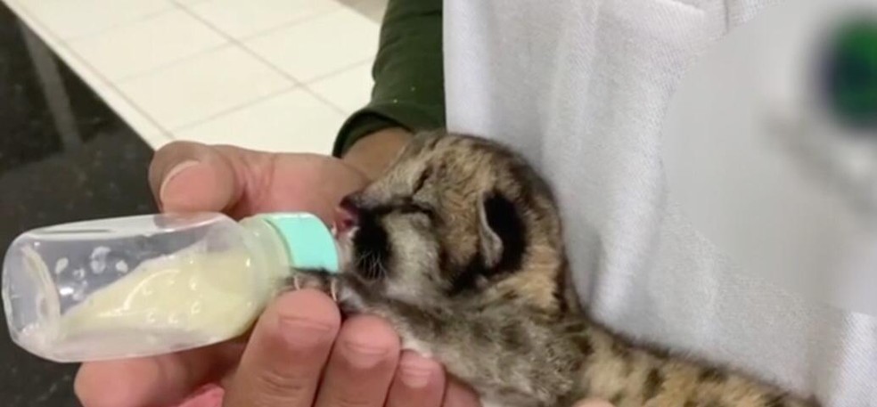 Um filhote de onça parda de apenas 2 meses foi resgatado em um canavial de Loanda (PR) no último domingo (20) e levado para uma fazenda que tem um trabalho de recuperação de animais silvestres em Itaquiraí, no sul de Mato Grosso do Sul.
