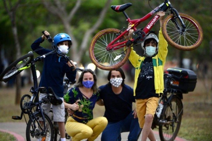 A bike é uma paixão para a família dos servidores públicos Uirá Felipe Lourenço, 41 anos, e Ronieli Barbosa da Silva, 40 — pais de Cauã e Iuri, 12 e 11 anos respectivamente. Uirá explica que a paixão pelo ciclismo surgiu quando ainda morava em São Paulo. Com as dificuldades de locomoção devido ao intenso trânsito da cidade, ele decidiu recorrer à bicicleta. “Foi muito mais agradável e rápido. Dali, foi um pulo pra abandonar o carro. Passei a utilizar a bicicleta todos os dias para ir até a faculdade, tornou-se a minha ginástica diária. A partir de então, eu virei um ativista em favor das bicicletas. Em 2005, mudei-me para Brasília e continuei a utilizar o transporte”, lembra.