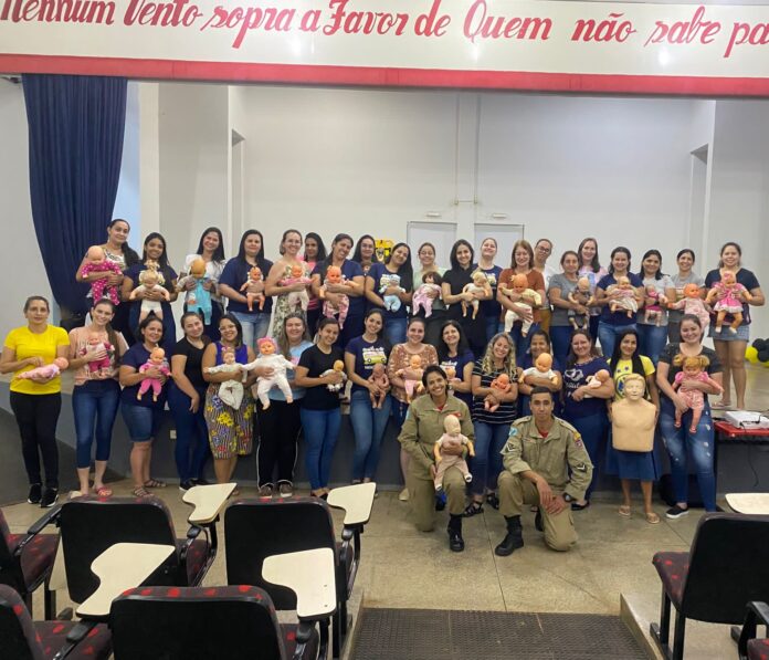 Profissionais dos centros de Educação Infantil de Mundo Novo estão participando de uma capacitação de cinco dias de primeiros socorros, ministrado pelo Corpo de Bombeiros Militar, no Anfiteatro da UEMS.