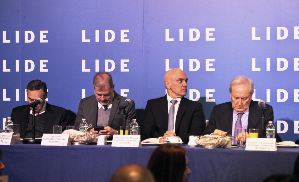 Nesta semana, Alexandre de Moraes, Gilmar Mendes, Ricardo Lewandowski, Dias Toffoli e Luís Roberto Barroso viajaram aos Estados Unidos para participar da Lide Brazil Conference, evento que realizou debates sobre “liberdade de expressão e democracia”.