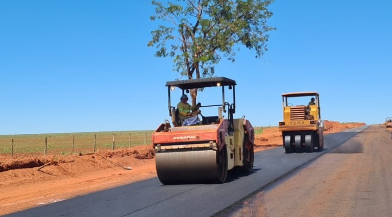 CHAPADÃO DO SUL: pavimentação de rodovias estaduais avança com quatro frentes de obras