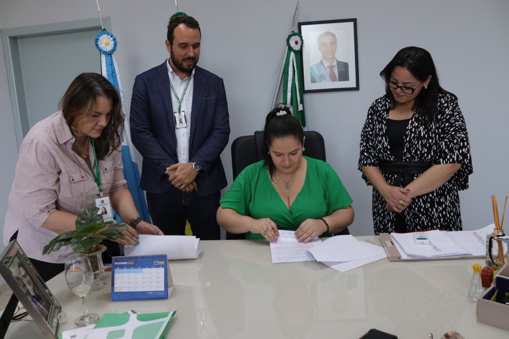 O contrato de cotitularidade de propriedade intelectual do referido software, foi assinado pela Prefeita de Naviraí e a Reitora do IFMS na terça-feira (22/11), no Paço Municipal. Gestores do campus do IFMS local, da Gerência de Assistência Social e da Gerência de Obras participaram do ato de assinatura do contrato. O projeto será desenvolvido pelo NIT – Núcleo de Inovação Tecnológica, do campus do IFMS local.
