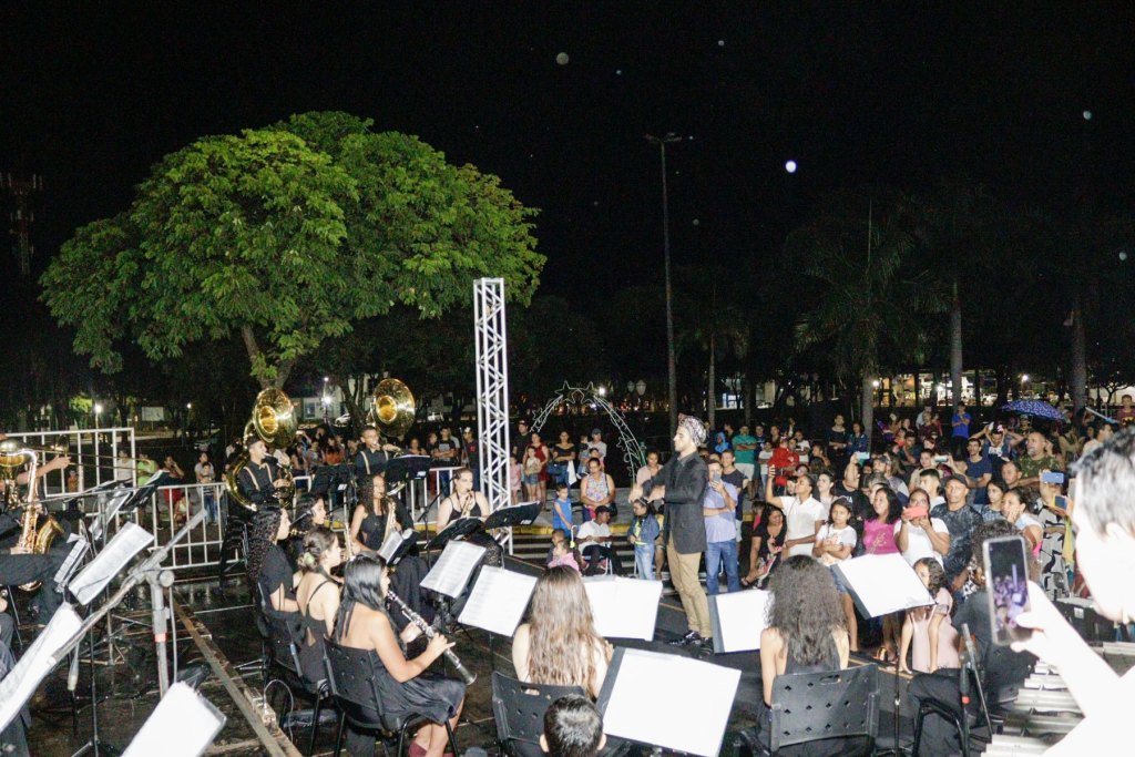 A Prefeitura de Naviraí, por meio da Fundação Cultural, abriu na noite de sexta-feira (02/12), o projeto Brilha Naviraí 2022 que marca o início das festividades do Natal no município. A solenidade contou com apresentação da Banda Marcial Tom Jobim, que encantou o público com adaptações de medleys de músicas que fizeram sucesso nas décadas de 70, 80 e 90.
