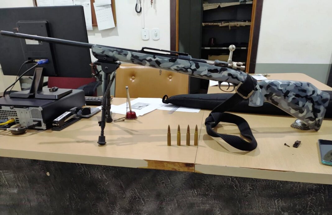 Além da arma, os policiais localizaram cinco munições do mesmo calibre e um tripé utilizado para apoiar o armamento. Tanto L.R.S. quanto R.E.N.B. foram presos por posse ou porte ilegal de arma de fogo de uso restrito.