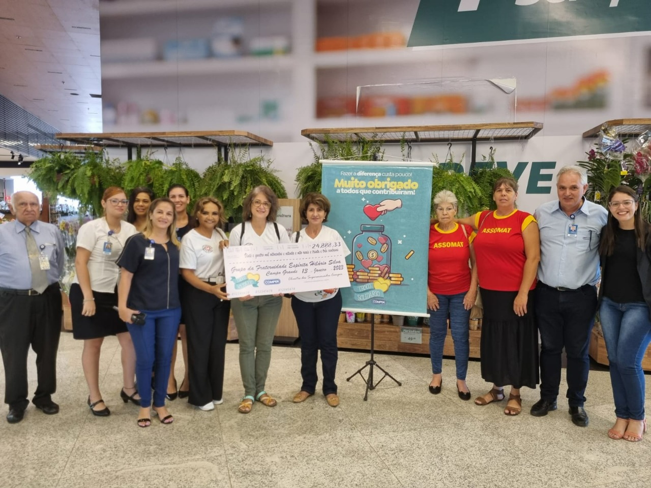 Na última semana, os supermercados Comper realizou na sexta-feira (13), a entrega do cheque simbólico no valor de R$ 24.888,33 das doações de clientes durante os meses de novembro e dezembro de 2022 ao Grupo Fraternidade Espírita Hilário Silva.