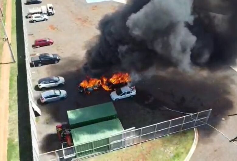 O incêndio que aconteceu no pátio da nova sede do DOF (Departamento de Operações de Fronteira) na tarde desta quarta-feira (25) deixou três veículos, que haviam sido apreendidos, destruídos.