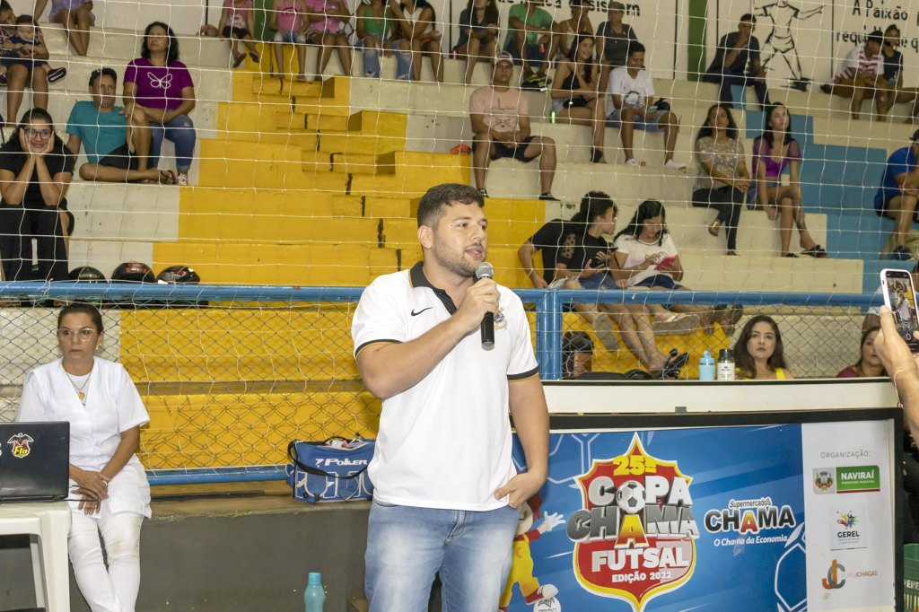 Foi realizada na noite de sexta-feira (10/03), a solenidade de abertura da Copa Cidade Naviraí de Futsal Adulto 2023. Realizado pela Prefeitura Municipal, por meio da GEREL – Gerência de Esportes e Lazer, o evento conta com a participação de 36 equipes, sendo 32 no masculino e 04 no feminino. A novidade deste ano é a participação da Associação Atlética Tekoha Urbana, equipe composta por atletas indígenas.