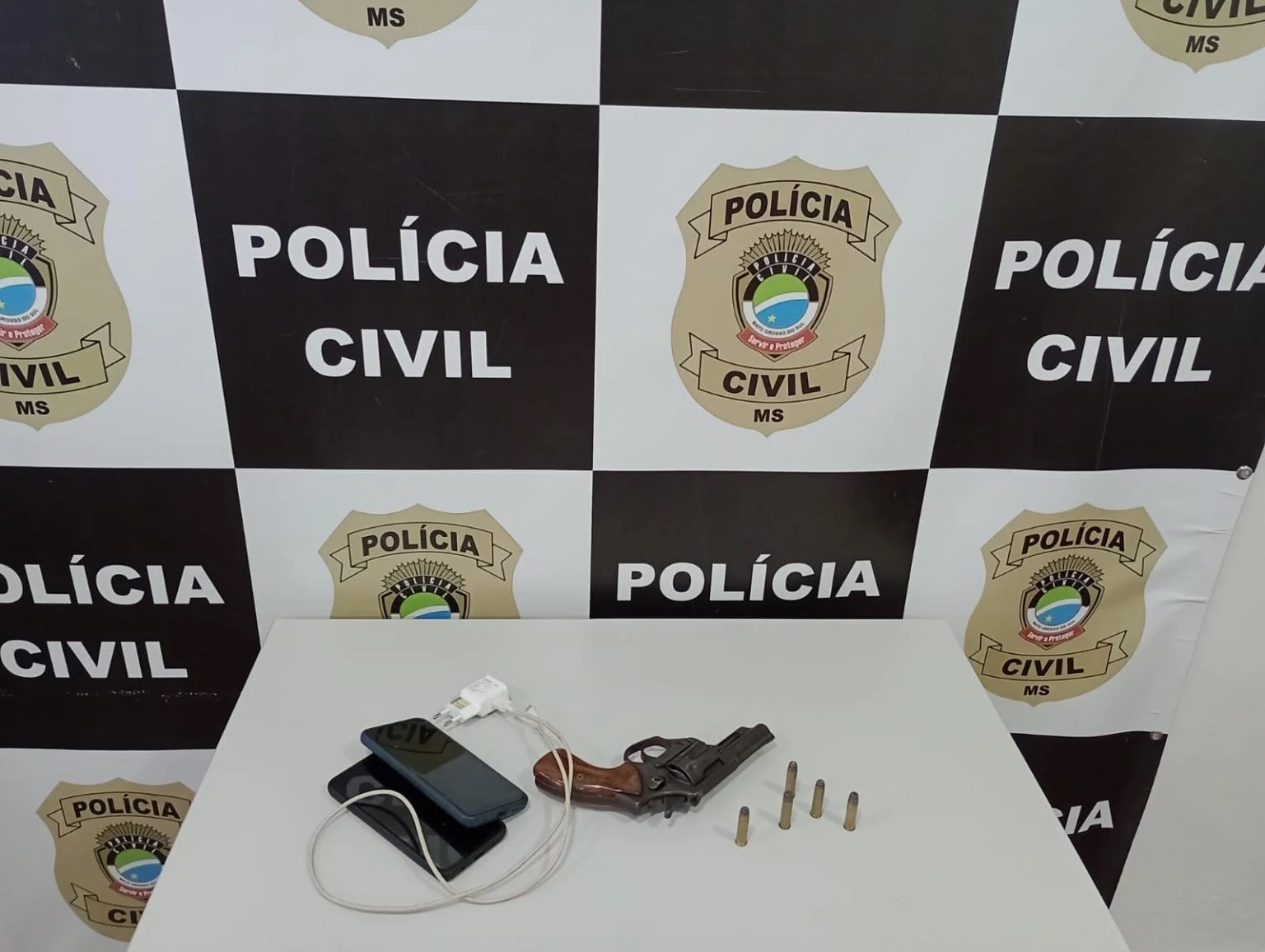 Segundo a vítima, além de aproximar-se dela, descumprindo a decisão judicial, ainda ameaçou de atear fogo em sua residência. Durante o cumprimento do mandado de prisão em desfavor de C.P.S., os policiais civis flagraram R.C.R. portando um revólver 357/Magnum, calibre .357, municiado com cinco munições intactas do mesmo calibre, uma porção de drogas, que apresentou o peso de 43 gramas e um aparelho celular.