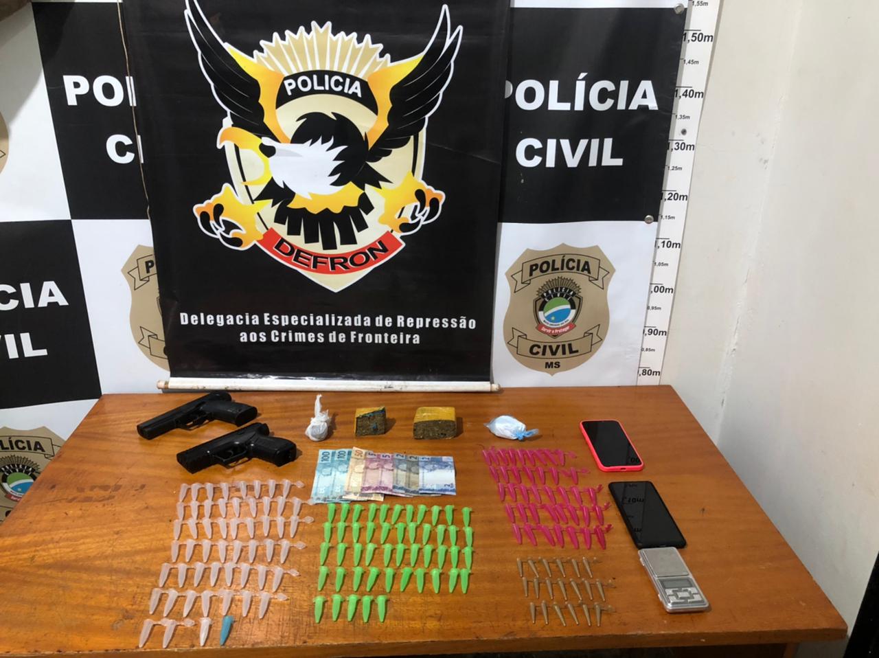 A Polícia Civil, por intermédio da Delegacia de Repressão aos Crimes de Fronteira (DEFRON), no âmbito da Operação 100 Dias, nesta terça-feira, 18/04, deu cumprimento a dois mandados de busca no município de Coronel Sapucaia-MS e prendeu duas pessoas em flagrante por tráfico de drogas.