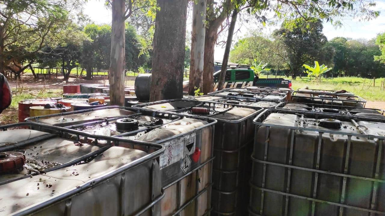 Por tratar-se de produto perigoso ao ambiente, a equipe foi com o motorista até o local onde ele estava indo pegar o material e localizou um depósito irregular de óleo lubrificante usado. Na chácara, próxima à estrada conhecida como Igrejinha, os Policiais verificaram um total de 4.000 litros do produto perigoso em “bombonas” de plásticos, sobre “palets” e mais 45 tambores metálicos vazios, mas também com resquícios de óleo.