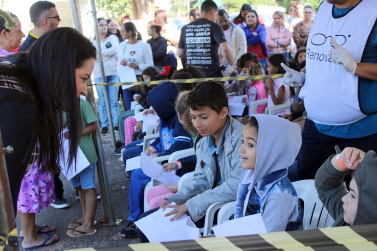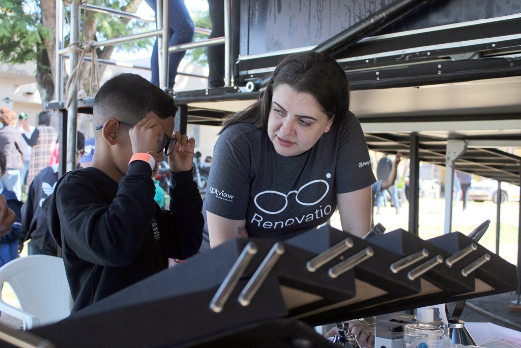 Destes, aproximadamente 500 apresentaram problemas de visão, passaram por exames com especialistas no sábado e no domingo (29 e 30 de abril), na Carreta Oftalmológica da ONG Renovatio, na quando receberem a prescrição e puderam escolher a armação dos óculos de grau.