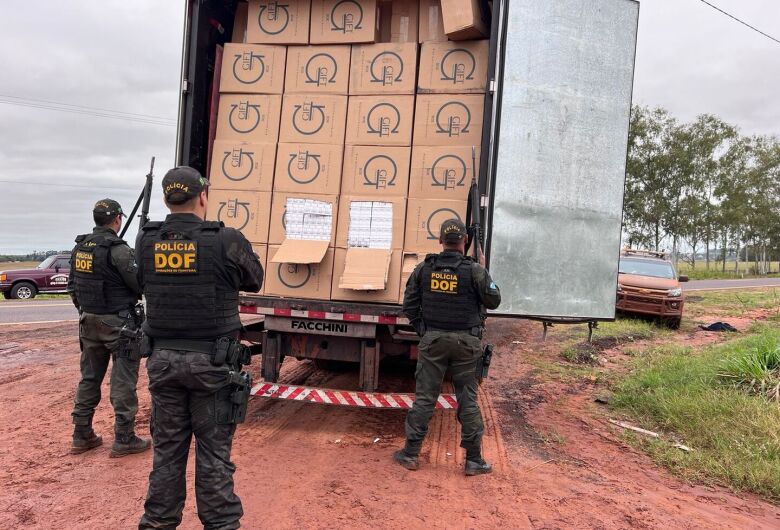 O veículo estava carregado com 35 mil pacotes de cigarros de origem estrangeira, sem a documentação de regularidade fiscal ou sanitária.