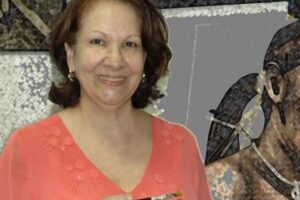 Mara Inês da Cruz Silva é formada em Artes Plásticas e trabalha há quase 25 anos na área. Tem especialização em Conservação e Restauração de Patrimônios Arquitetônicos e vários cursos na área de restauração. Já participou de diversas mostras brasileiras, ganhou prêmio e seus quadros estão presentes em vários países. Dentre seus trabalhos em Mato Grosso do Sul, está a recuperação da imagem de Nossa Senhora da Abadia, que integra a Catedral de Campo Grande, desde 1912 – estátua datada de ao menos 120 anos, que a artista demorou quatro meses na recuperação. Mara Inês é irmã do ex-deputado Amarildo Cruz (PT – in memorian) e disse que o irmão sonhava com a conservação do painel exposto na ALEMS.