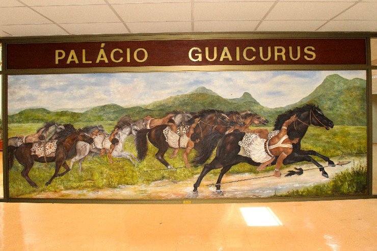 “Este trabalho de restauro faz parte do planejamento da nova gestão, visando a manutenção do Palácio Guaicurus, sede da Assembleia. O painel, obra da consagrada artista, integra o patrimônio cultural do Estado e resgata e imortaliza o heroísmo dos povos indígenas na defesa do território brasileiro”, pontuou o presidente da ALEMS, deputado Gerson Claro (PP). O quadro, que retrata exímios cavaleiros indígenas que lutaram ao lado dos brasileiros na Guerra do Paraguai (1864-1870), foi baseado na obra Charge de Cavalerie Gouaycourous, do francês Jean Baptiste Debret.