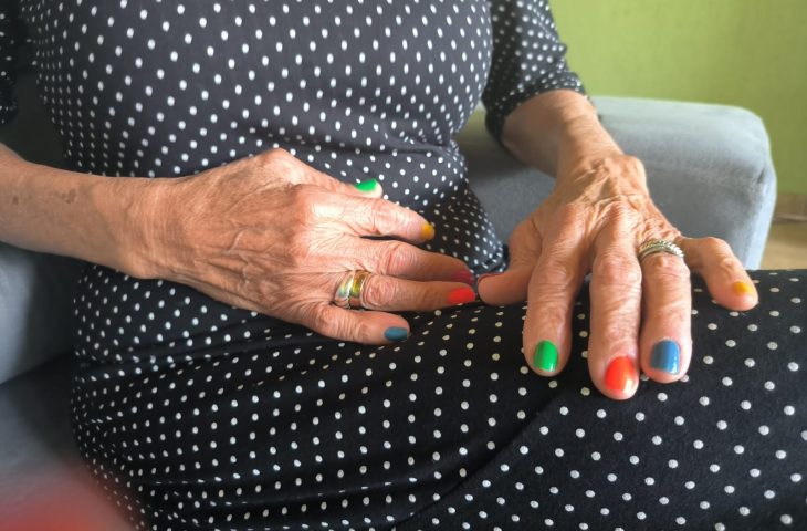 O colorido das unhas mostra como dona Vitória*, de 69 anos, enxerga a vida. Em agosto de 2022, ela teve a coragem de abrir a porta da delegacia para denunciar a violência que vinha sofrendo de quem fora seu companheiro durante seis anos.