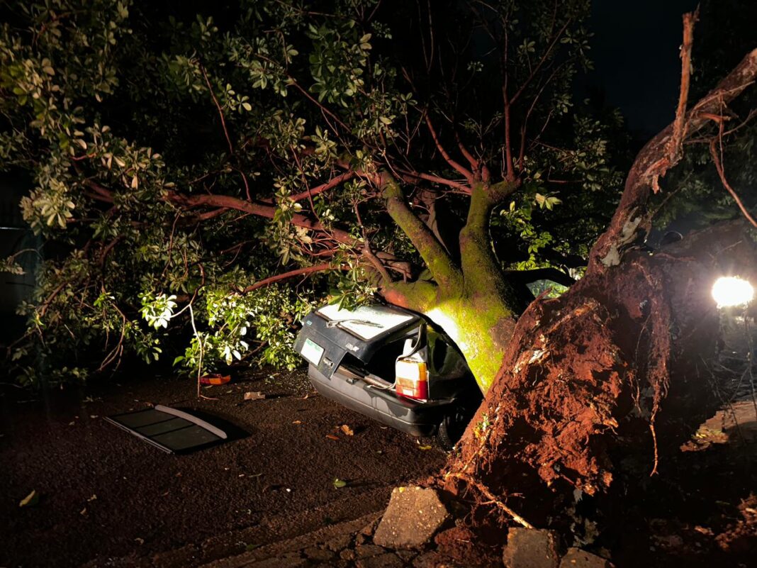 Em outro ponto da cidade, uma árvore caiu sobre um veículo Fiat Uno, no cruzamento da Rua Cornélia Cerzósimo de Souza com a Rua Ponta Porã. Não havia ninguém no veículo e nenhuma pessoa ficou ferida devido à queda da árvore. O carro estava com trabalhadores que faziam uma montagem em uma farmácia que ficas nas proximidades.