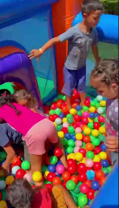 Numa tarde de calor intenso, os integrantes do ‘Chamados a Servir’ organizaram atividades diversas, entregaram algodão-doce, picolés e cachorro quente. As crianças também se divertiram nos brinquedos infláveis montados no gramado.