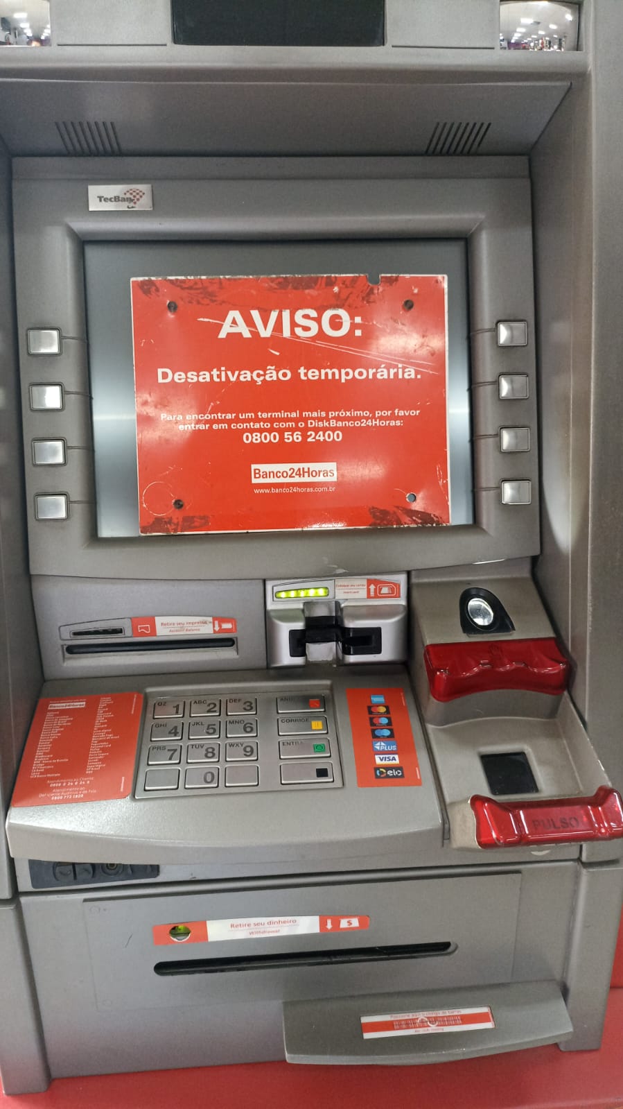 Contudo, esta não é a questão. A reclamação geral é que com muita frequência o tal “Banco24Horas” está sem dinheiro para saque. Seja no meio ou fim de semana o problema é recorrente. Aliás, no fim e início de mês a falta da moeda papel tem ocorrido, como está sendo registrado desde ontem e prossegue hoje (08-03).
