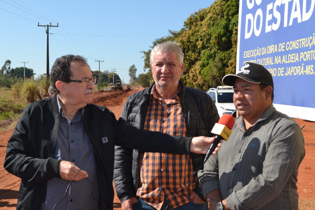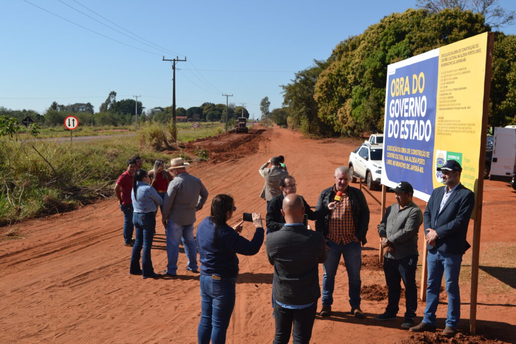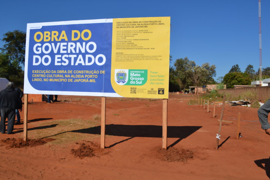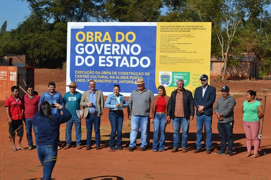 O primeiro canteiro de obras visitado pelas lideranças de Japorã foi o Centro Cultural que começou a ser construído no interior da Aldeia Porto Lindo, à margem da MS-386, ao lado da Escola Estadual Indígena Kuña Yruku – “Marina Lopes”.