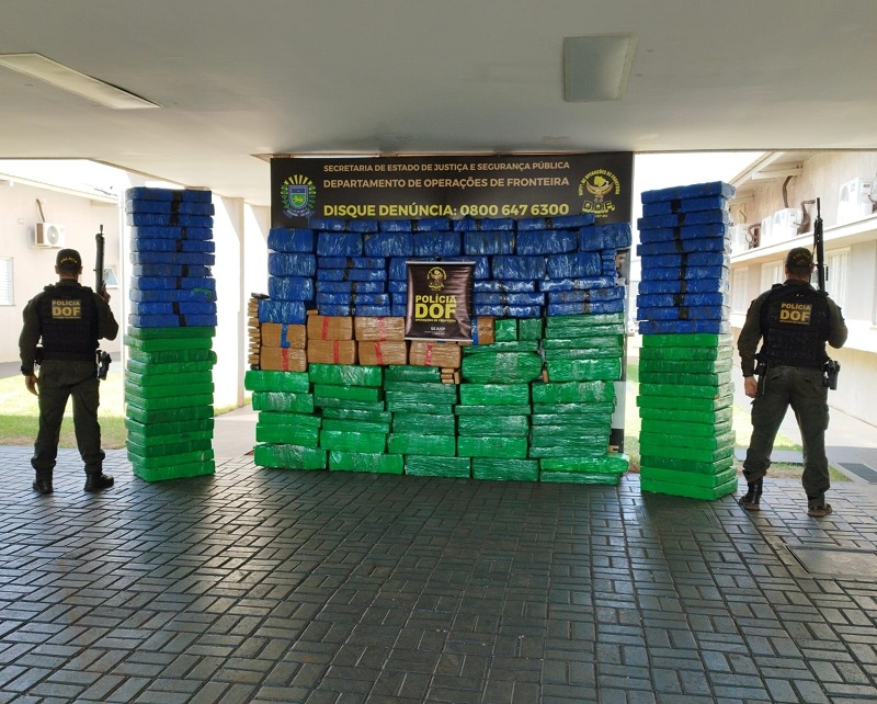 Policiais militares do DOF (Departamento de Operações de Fronteira) apreenderam na madrugada de hoje, sexta-feira (30-08), grande quantidade de maconha, com peso total de 2,47 toneladas. Na ação ninguém foi preso.