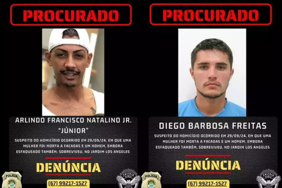 À medida que as investigações continuam, a Polícia Civil divulgou imagens dos suspeitos, informando que, caso a população tenha visto Arlindo Francisco Natalino Júnior e Diego Barbosa Freitas, deverá entrar em contato pelo telefone: (67) 99217-1527.