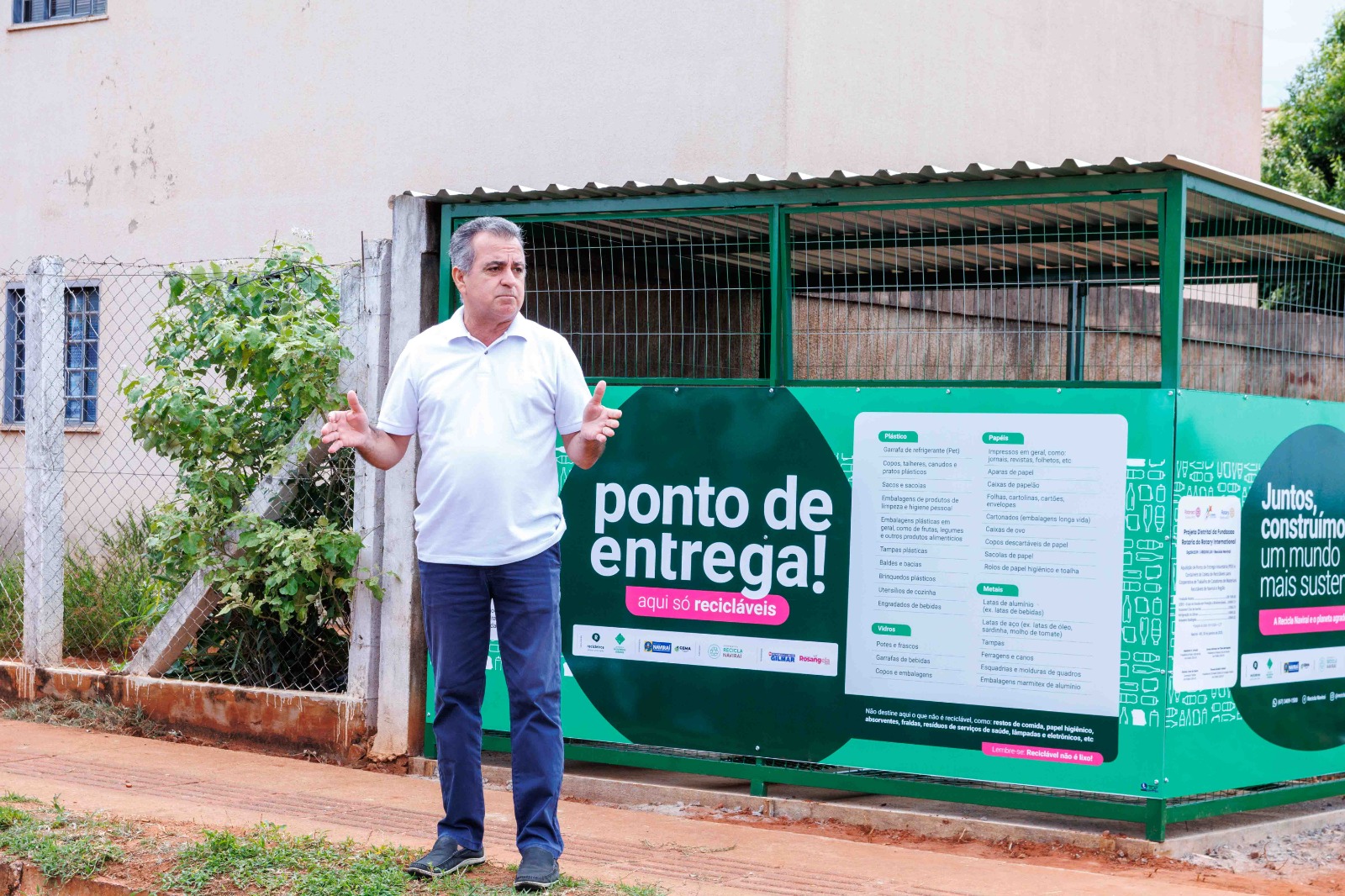 Foi inaugurado na manhã de hoje (30-01), exatamente às 8h55, mais um PEV (Ponto de Entrega Voluntária) para recebimento de resíduos recicláveis. Desta vez, o ecoponto foi instalado na rua João Francisco da Penha (do lado da Quadra 07), no Conjunto Residencial “Deputado Federal Nelson Trad”, situado na região norte de Naviraí, onde residem aproximadamente 800 famílias.