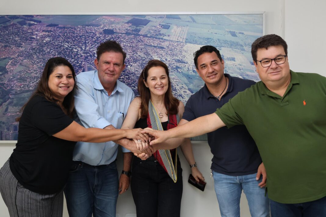 Os vereadores, Márcio Araguaia, Éderson Dutra, Giovana Silvério, Mário Nelvo (Mário do Gesso), Salia Regina (Sara do Castelão), Brendo Caíque, Rosângela Sofa e Patrícia Capuci, e os gerentes, Fauze Selem (Geral) e Astolfo Carlos Mendes (Finanças), e o assessor da Casa Civil do Estado, Dorival Betini, participaram da reunião no Paço Municipal.