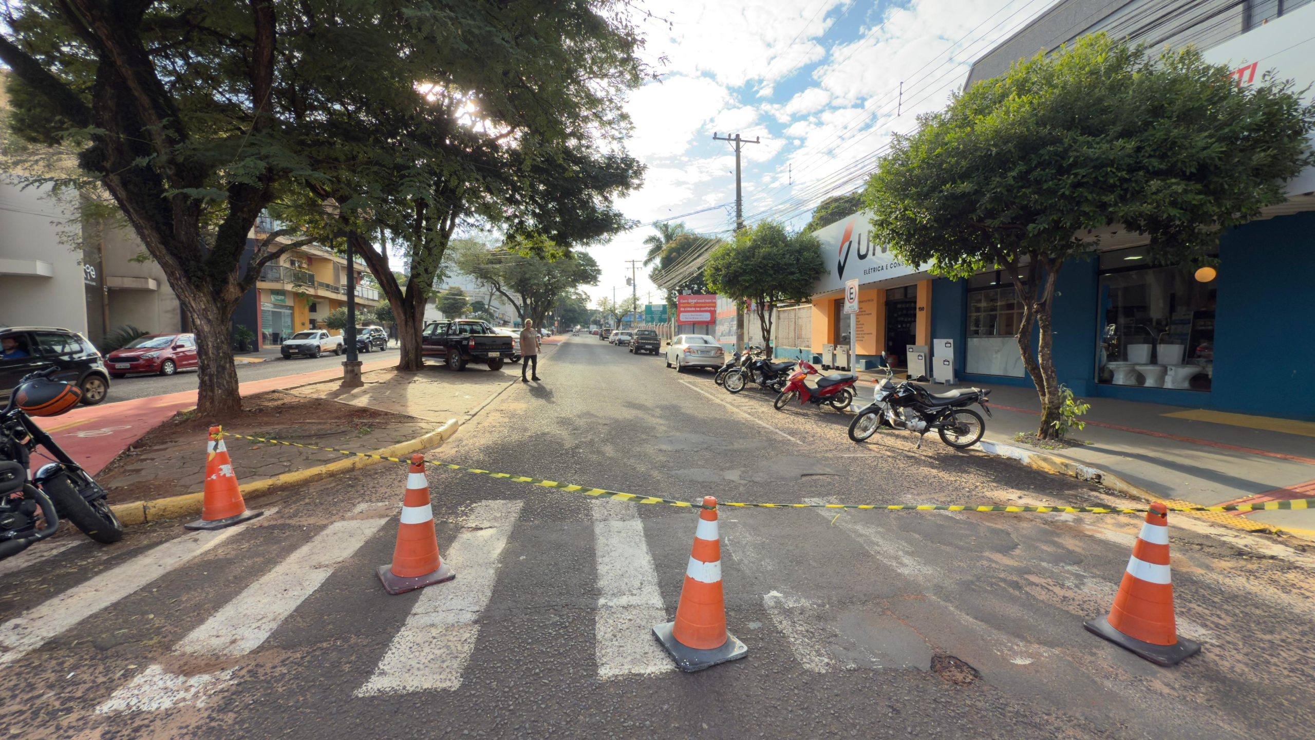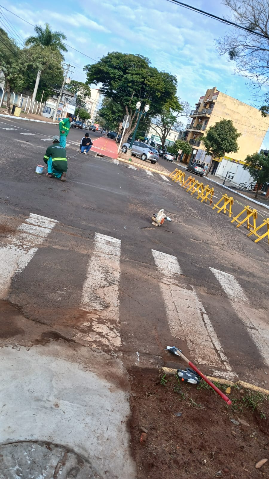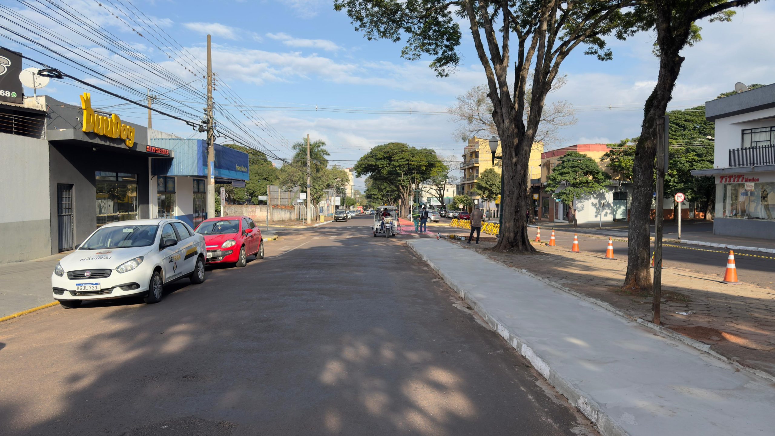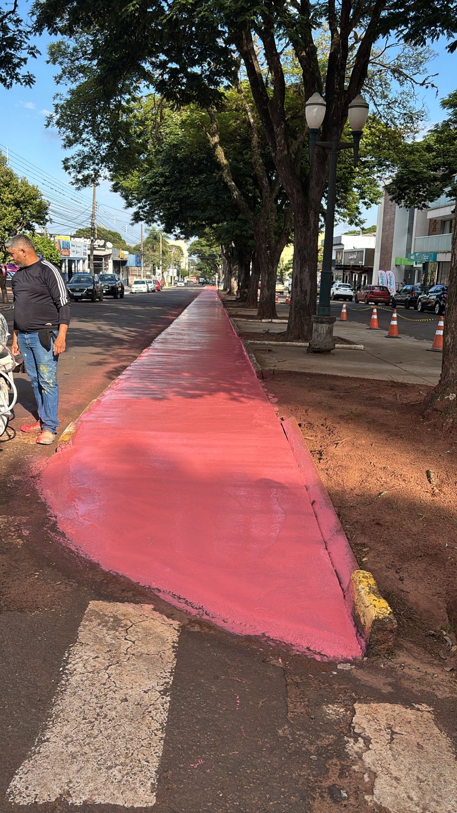 A implantação de sinalização foi precedida dos trabalhos de construção da calçada linear, executada pela equipe da Gerência de Obras da Prefeitura. A nova ciclovia terá sequência até os altos da avenida Dourados, com retirada dos blocos retangulares que estão danificados, e construção de novo calçamento linear.