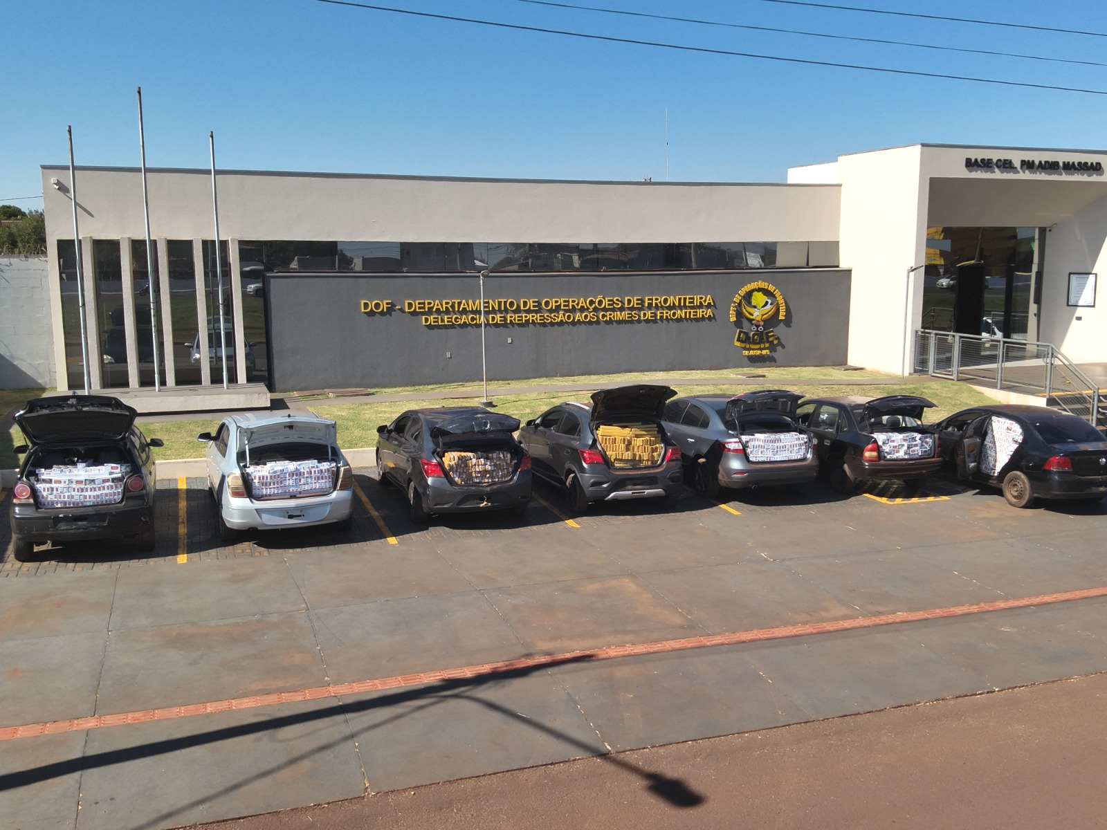 Durante diligências, os policiais localizaram em uma área de plantação de cana-de-açúcar um VW Polo e um VW Voyage carregados com cigarros contrabandeados, além de um GM Onix e um GM Prisma com maconha. Em um segundo ponto, foram encontrados um GM Cobalt, um Renault Fluence e um GM Classic.