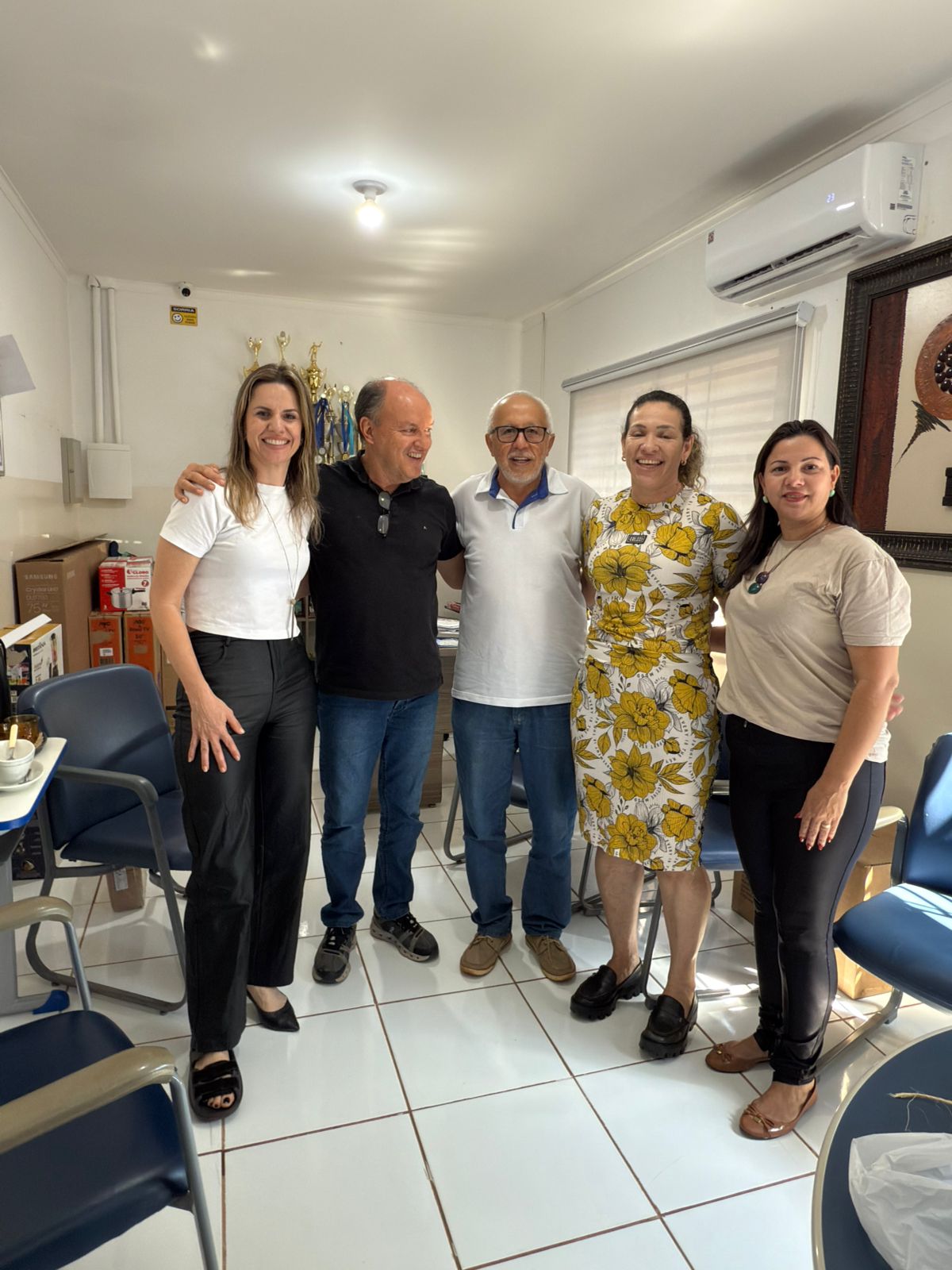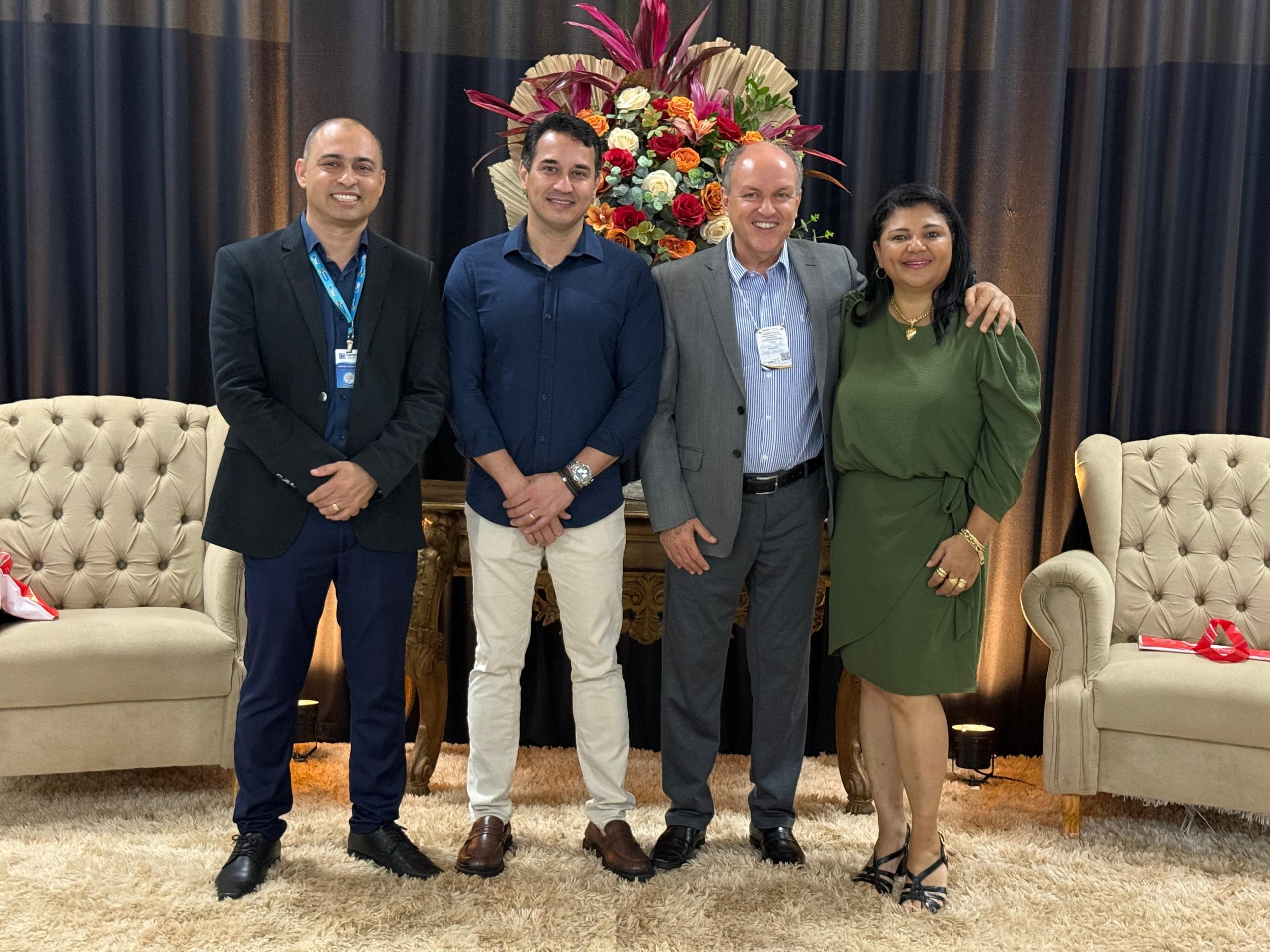 Deputado Júnior Mochi, prefeito Rodrigo Sacuno, vice-prefeita Telma Minari, e vereadora Giovana Silvério. © Divulgação