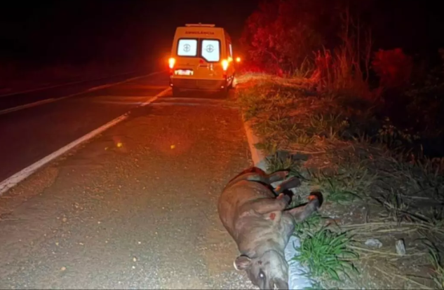 Anta morre atropelada por ambulância na rodovia MS-134; passageira fica ferida