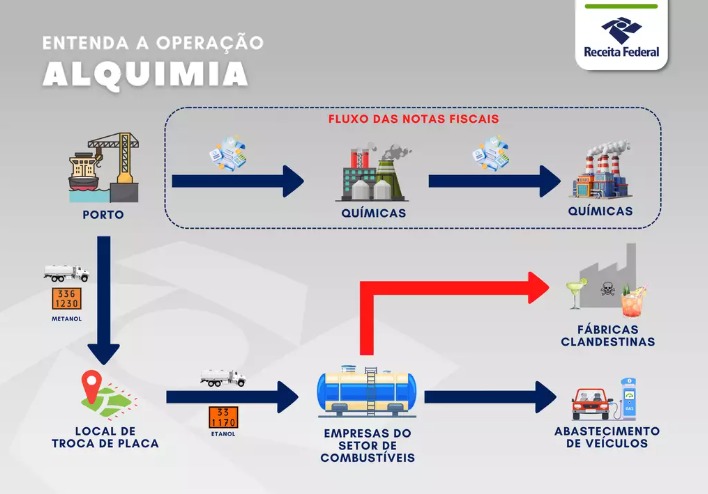 Desdobramento – A Operação Alquimia é um desdobramento das operações Boyle e Carbono Oculto, que revelaram um esquema de adulteração de combustíveis com metanol. Há fortes indícios de que esse combustível adulterado esteja sendo utilizado na fabricação clandestina de bebidas alcoólicas, configurando uma cadeia de irregularidades com alto potencial de risco à saúde pública.