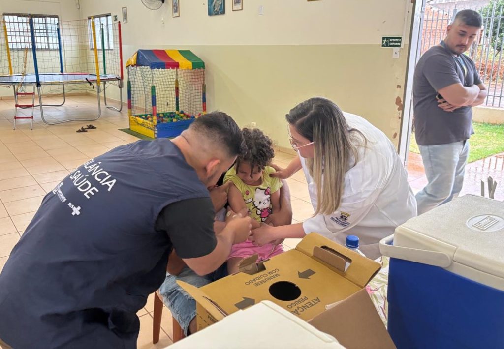 Em Campo Grande, o ponto de vacinação instalado na Paróquia Santo Expedito, no Jardim Itamaracá, recebeu as famílias que aproveitaram o sábado para colocar as vacinas em dia. Profissionais da saúde conduziram o atendimento, aplicando todas as vacinas previstas no Calendário Nacional de Vacinação.