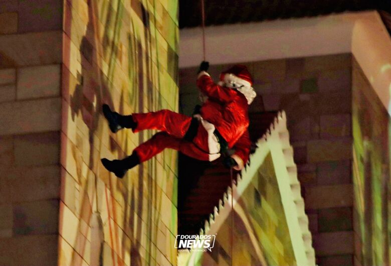 O Papai Noel, um dos símbolos do Natal, em vez de plainar de trenó, desceu pela torre da Catedral da Igreja Matriz de rapel, fazendo a alegria de multidão que aguardava pelo momento. Em seguida, ele foi recebido pelo prefeito Marçal Filho (PSDB).